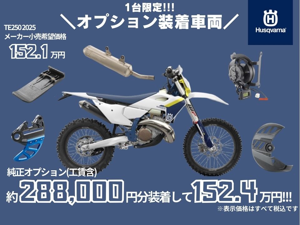 ハスクバーナ葛飾では、各1台限定でTE250 2025とEC250F 2024の純正オプション車両を特別価格で販売いたします!